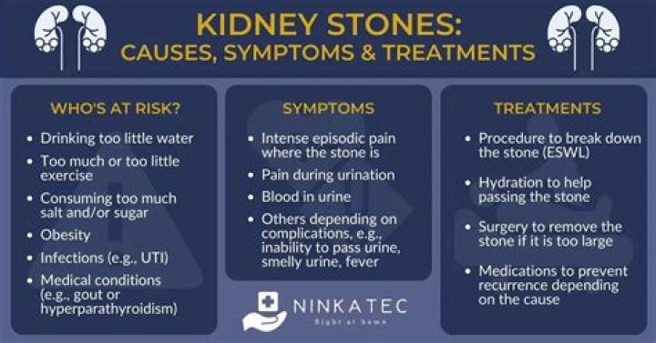 Kidney stones are hard collections of salt and minerals that form in your kidneys and can travel to other parts of your urinary system. Stones cause symptoms like pain, trouble urinating, cloudy or smelly urine, nausea and vomiting.
