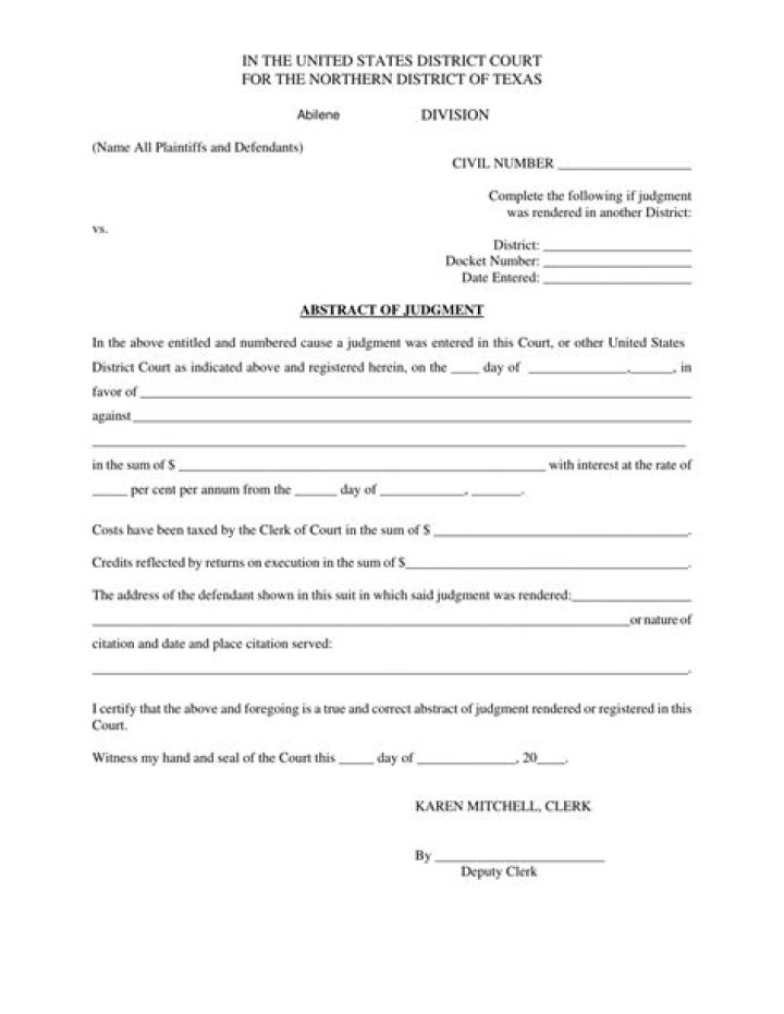 In California, the Abstract of Judgment is a Judicial Council form that can be downloaded from any court website (Form EJ-001). The form asks for information regarding the debtor’s name, last known address, driver’s license number, and the amount of money the debtor owes you.
