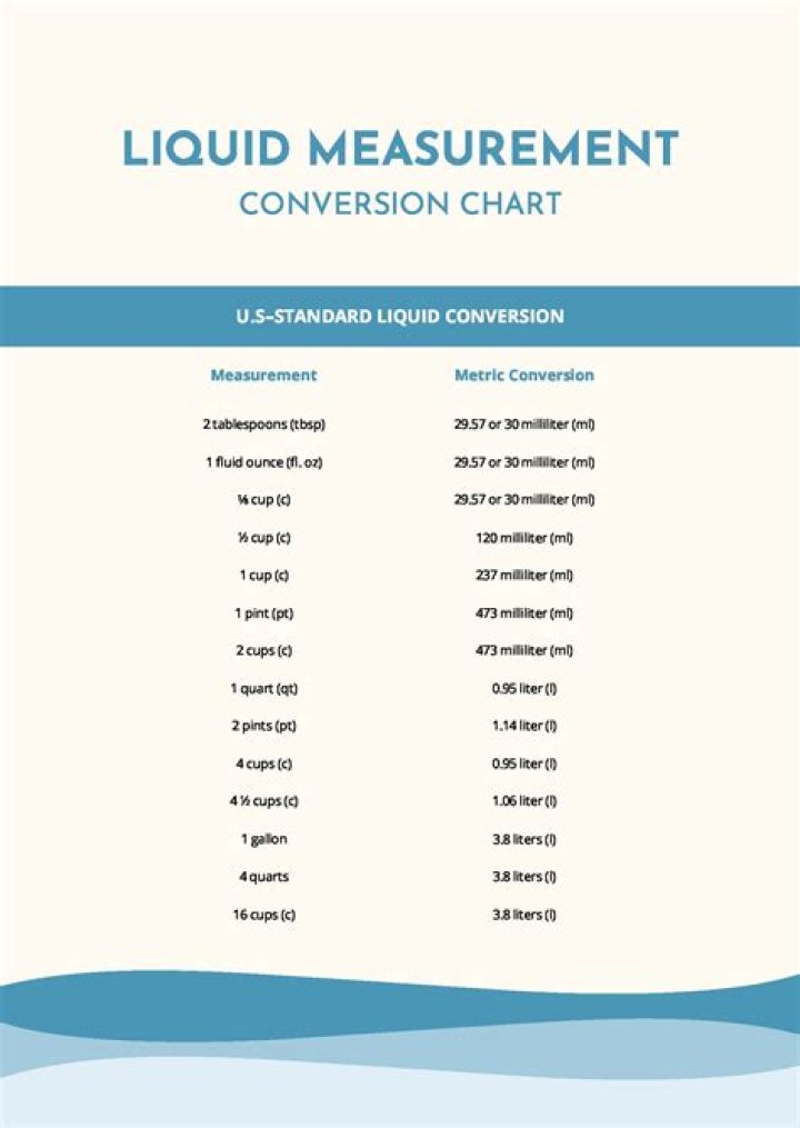 Liquid Measures 1 cup 8 fluid ounces 1/2 pint 237 ml 16 tablespoons 2 cups 16 fluid ounces 1 pint 473 ml 4 cups 32 fluid ounces 1 quart 946 ml 2 pints 32 fluid ounces 1 quart 0.946 liters 4 quarts 128 fluid ounces 1 gallon 3.785 liters