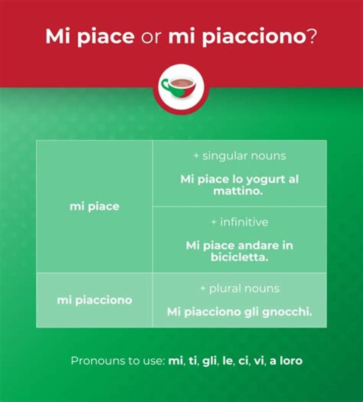 It’s very important to be able to say what you like and what you don’t like. In English, “to like” is an active verb, as in “I like strawberries.” Italians use the verb piacere (to be pleasing, to delight) to say they like something.