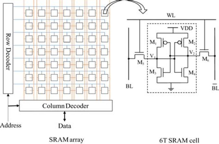 SRAM means Static Random Access Memory. The SRAM cell that we considered in this paper was 6T SRAM cell which consists of two crossly coupled inverters and access transistors to read and write the data. Therefore, SRAM is much faster when compared with the DRAM.