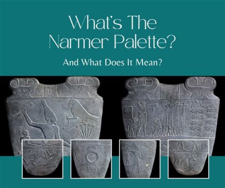 The tablet is thought by some to depict the unification of Upper and Lower Egypt under the king Narmer. On one side, the king is depicted with the bulbed White Crown of Upper (southern) Egypt, and the other side depicts the king wearing the level Red Crown of Lower (northern) Egypt.