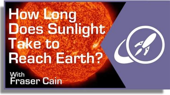 The Sun is 93 million miles away, so sunlight takes 8 and 1/3 minutes to get to us.