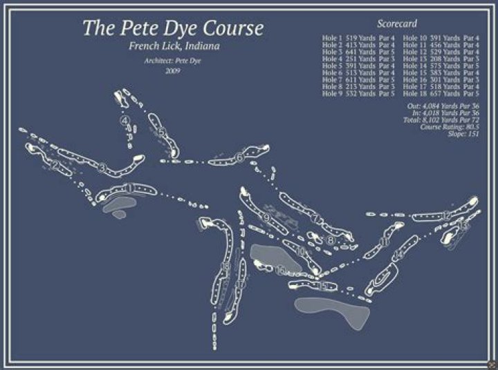 Description: The Pete Dye layout at French Lick opened for play at a reputed cost of $28m in 2009. The golf course occupies a difficult site that required 2.5 million cubic yards of earth to be moved during construction. Written by: Top100 Aggregated Rating Rating: 6.3 out of 10 Reviews: 6