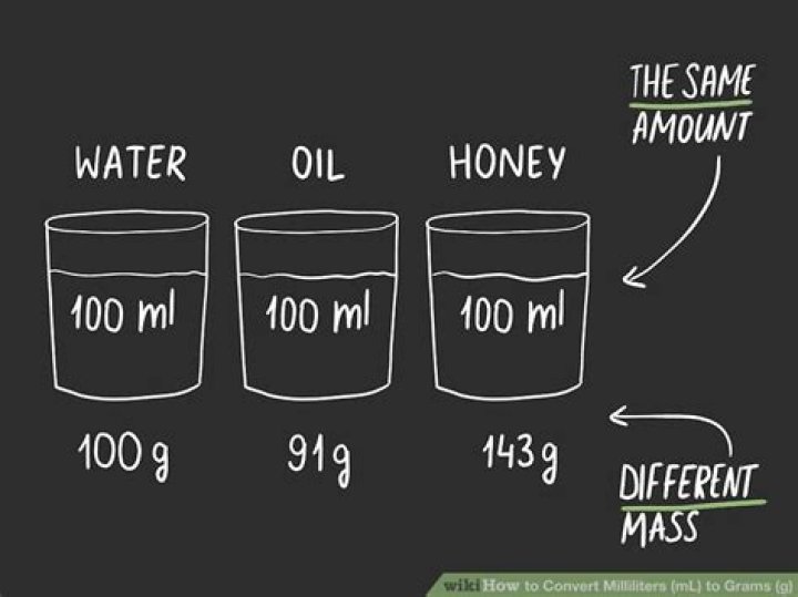 | 3 grams = 3 mL | 150 grams = 150 mL |