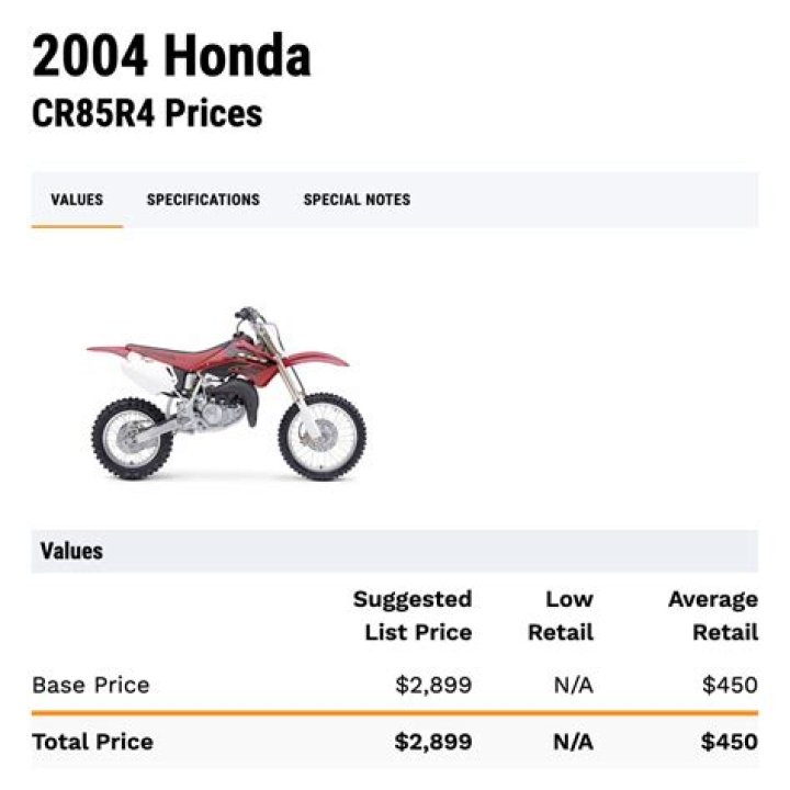 2004 Honda CR85R Pricing