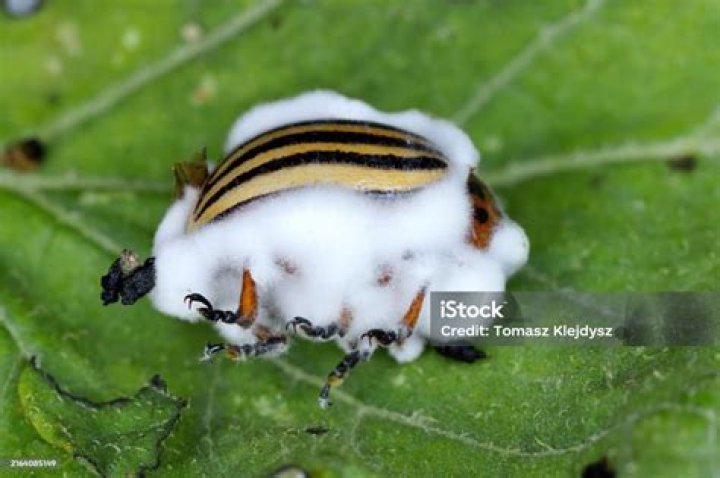 When the microscopic spores of the fungus come into contact with the body of an insect host, they germinate, penetrate the cuticle, and grow inside, killing the insect within a matter of days. Afterwards, a white mold emerges from the cadaver and produces new spores.