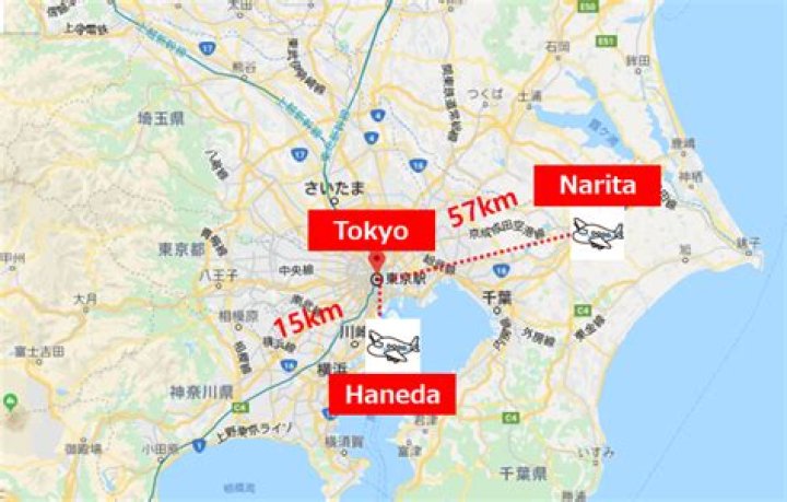 How far apart are Narita and Haneda airports?