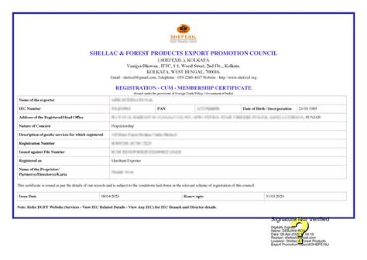 Registration cum Membership Certificate An exporter can be registered with the EPC by making an application to become a member of the appropriate EPC. On being accepted, the exporter will be issued a registration cum membership certificate which would be valid for a period of five years.