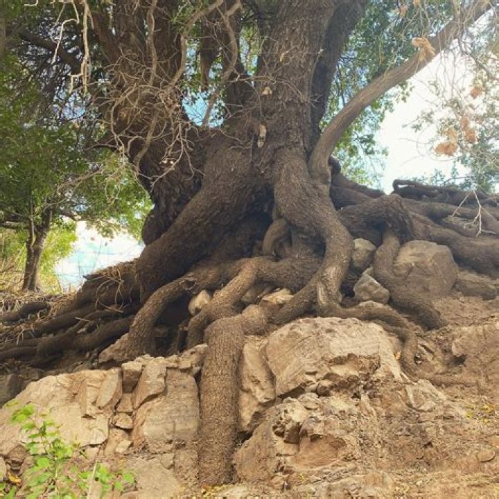 The tree has thick, dark bark; smooth, leathery, shiny, oval evergreen leaves 3–5 cm long; white star-shaped flowers 15 mm diameter borne in dense corymbs; and a dry fruit with five follicles each containing 10–20 seeds….Quillaja saponaria.
