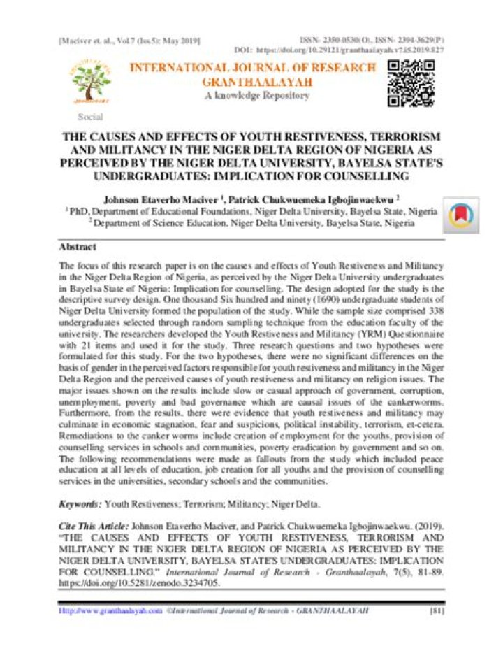 Elegbeleye (2005) defined youth restiveness as “a sustained protestation embarked upon to enforce desired outcome from a constituted authority by an organized body of youths.” It is marked by violence and disruption of lawful activities.