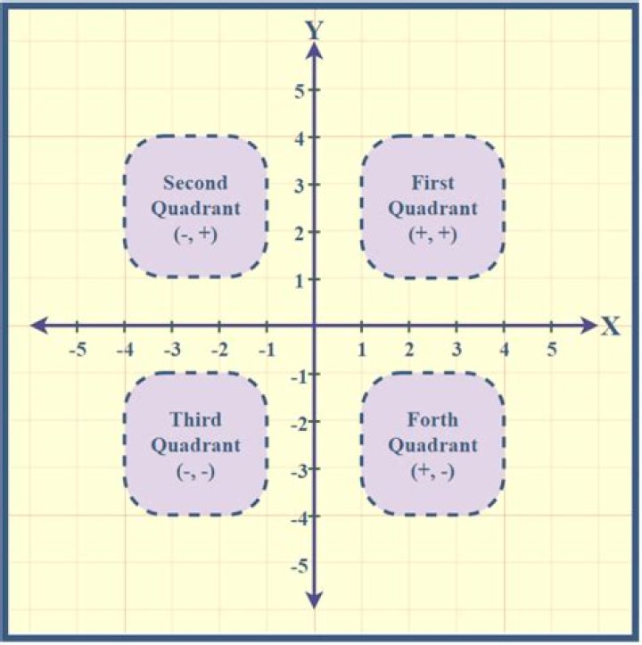 A quadrant is a region defined by the two axes (x-axis and y-axis) of the coordinate system. When the two axes, x-axis and y-axis, intersect each other at 90 degrees, the four regions so formed are the quadrants.