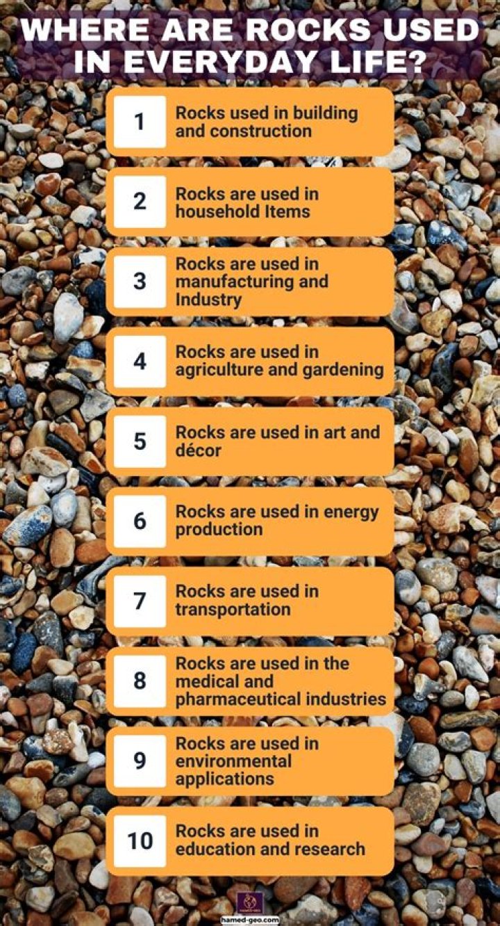 Rocks are used for many purposes but some of them that we can see in our daily life are cited below :