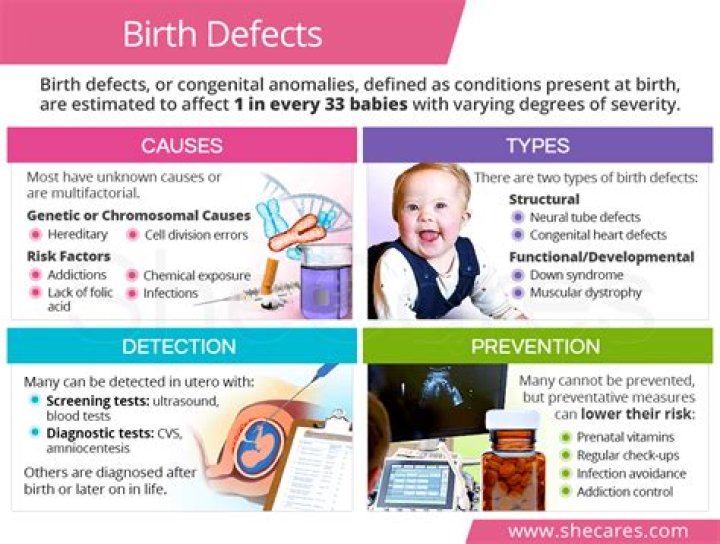 A birth defect is something visibly abnormal, internally abnormal, or chemically abnormal about your newborn baby’s body. The defect might be caused by genetics, infection, radiation, or drug exposure, or there might be no known reason.