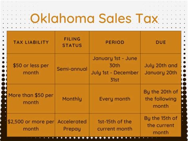 Oklahoma sales tax returns are always due the 20th of the month following the reporting period.