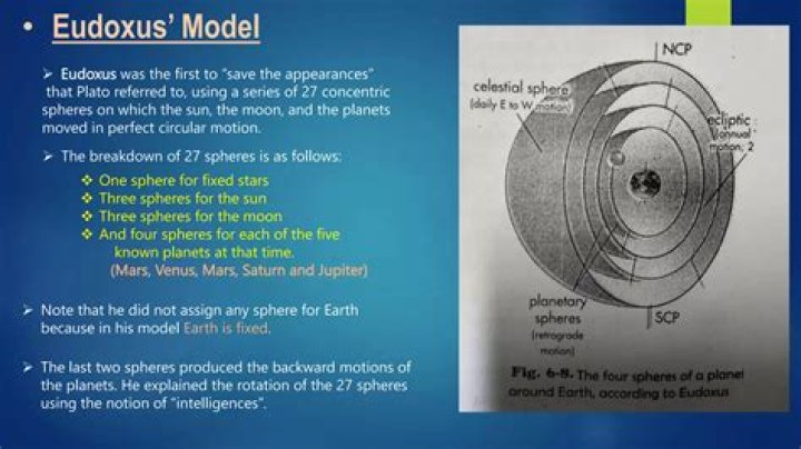 The first of these models was proposed by Eudoxus. Using 27 spheres (3 for the Sun, 3 for the Moon, 4 for each of the known planets and 1 for the fixed stars), Eudoxus was able to account for the daily motions of the celestial objects including the retrograde motion of the planets.