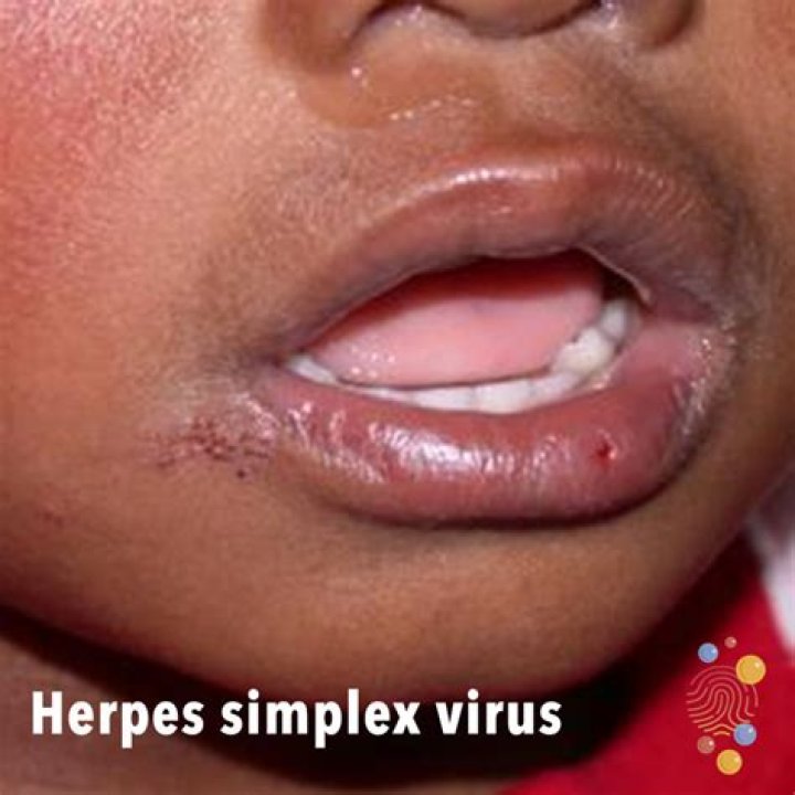 - Lesions similar to cold sores and fever blisters around the mouth.