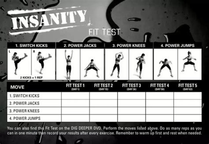 What exercises are on fit test insanity?