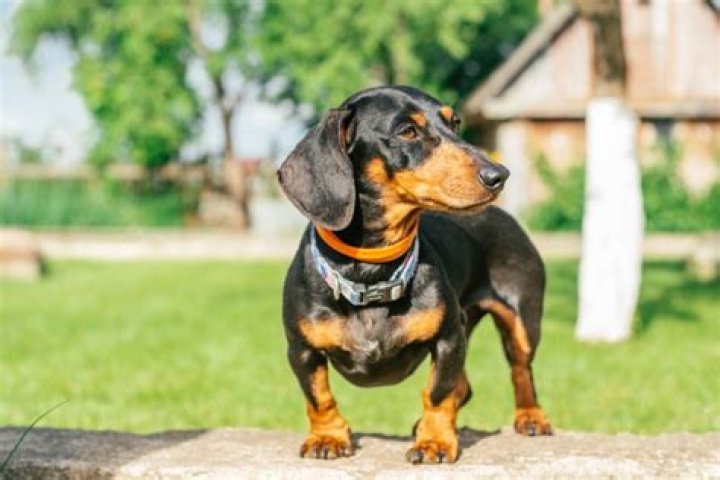 The average-sized dachshund is between 11 and 32 pounds and 8 to 9 inches tall. There is also a miniature version of this breed.