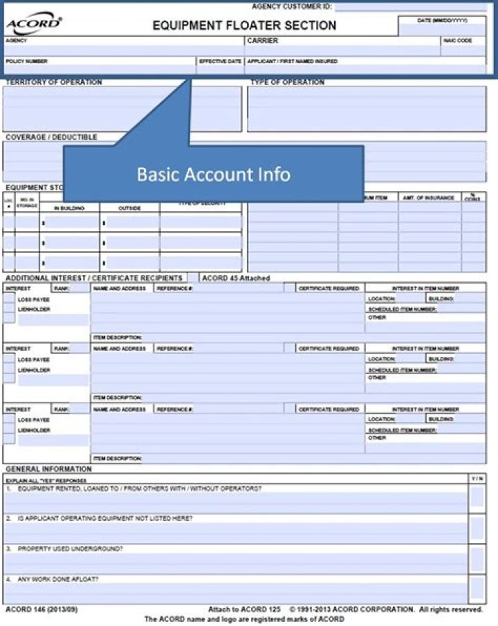 Within the various types of property insurance, equipment floater insurance is more specifically defined as a form of inland marine coverage. Inland marine insurance provides coverage for property that is not and cannot be permanently affixed to a single location.What does an installation floater cover?
