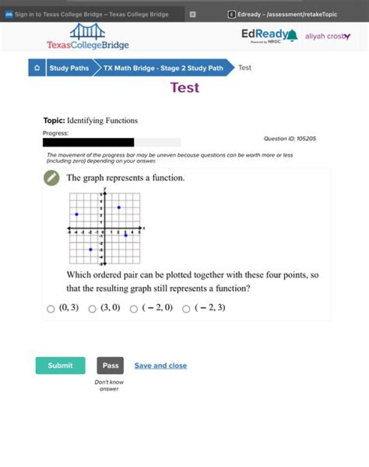 It will take about one hour to complete the diagnostic. If you don’t know something, be sure to use the Pass button. If you aren’t sure of a question and want to come back to it, use the Hold button. If you need to leave the diagnostic before you finish, click Save and close.