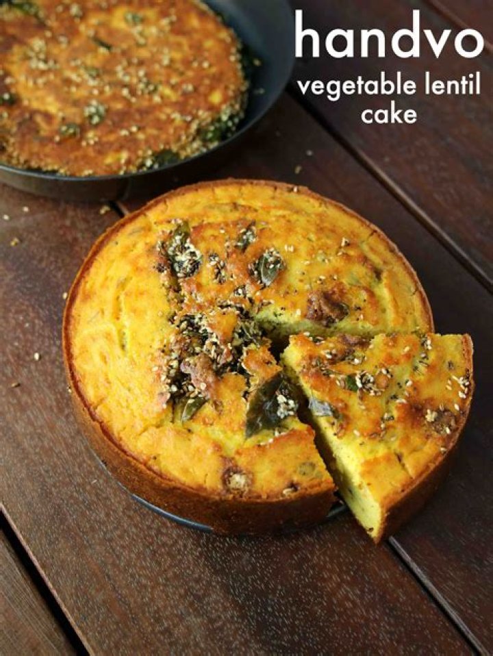 Handvo (Gujarati: હાંડવો) is a savory vegetable cake originating from Gujarat, India. It is a part of the Gujarati cuisine. It is often made with a bottle gourd filling, though many other vegetables can be added.