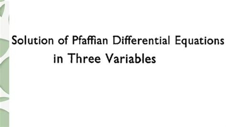 The general form of Pfaffian equations in two variables x and y is P dx + Qdy = 0, where P = P(x, y) and Q = Q(x, y) are functions of x and y. Let us simply write this equation as ω = 0, where ω = P dx + Qdy.