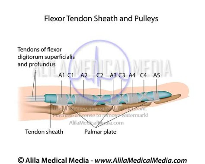 The tendon sheaths in the human hand work as a series of elastic pulleys to help transmit forces from the muscles to the joints, as the tendon sheaths can flatten down when the finger straightens and bulge out when the finger bends.