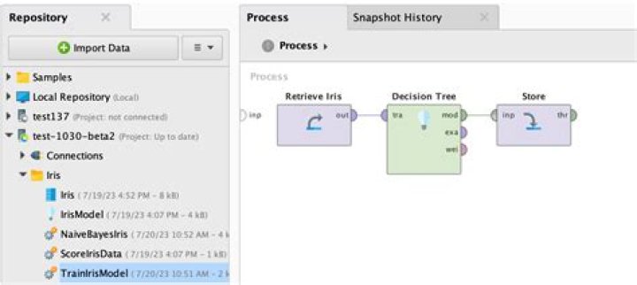 RapidMiner Studio is a visual data science workflow designer accelerating the prototyping & validation of models. Easy to use visual environment for building analytics processes: Graphical design environment makes it simple and fast to design better models.