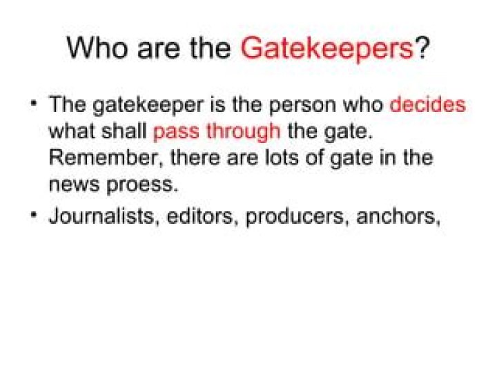 The Concept of Gatekeeping: The gatekeeper decides what information should move past them (through the information “gate”) to the group or individuals beyond, and what information should not. Gatekeepers are the at a high level, data decision makers who control information flow to an entire social system.