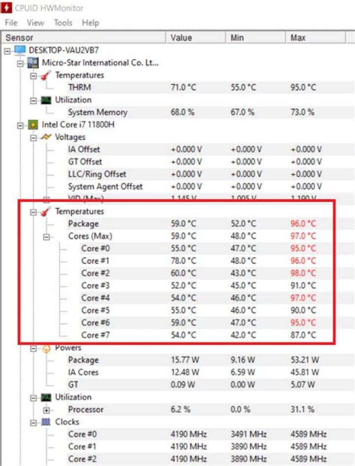 | Intel Core i7 | 50-65 °C |