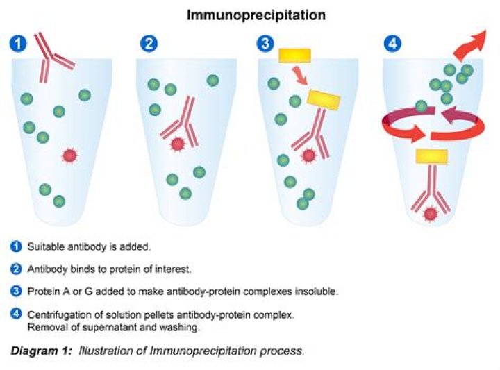 Immunoprecipitation (IP) is the technique of precipitating a protein antigen out of solution using an antibody that specifically binds to that particular protein. This process can be used to isolate and concentrate a particular protein from a sample containing many thousands of different proteins.