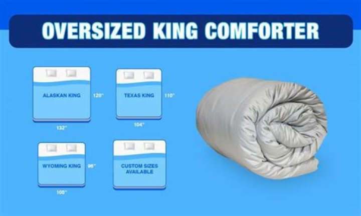 Because a king mattress is 76 inches wide by 80 inches long, a king comforter should have a few more inches lengthwise and widthwise, at least. Often, it’s around 100 inches wide and between 85 to 96 inches long. You want a comforter that can hang at least a few inches over the side of your bed.