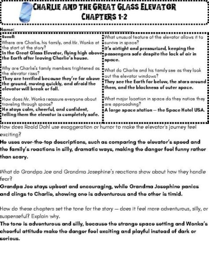The book begins where Charlie and the Chocolate Factory ends: Willy Wonka has just given Charlie the ownership of his factory, and they crash through the roof of Charlie’s house with a flying elevator to inform his family of the good news. The bed is thus pushed into the elevator, which then takes off.