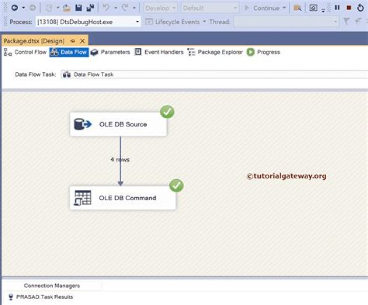 In this example, we will delete all the rows with No description data using SSIS OLE DB Destination Transformation Drag and drop the Data Flow Task from the toolbox to the control flow region. And rename it as Delete Data using OLEDB Command Transformation in SSIS. Double click on it will open the data flow tab.