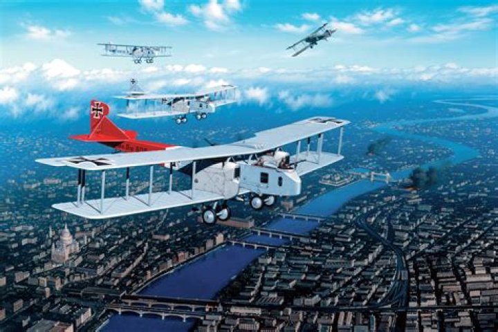 The Zeppelin Staaken R.VI was the largest bomber in service on the Western front during the World War I, with its 42.2 meter (138.5ft) wingspan and a maximum bomb load of 4,400 lbs. It was powered by two pairs of engines, and had a maximum range of 500 miles.
