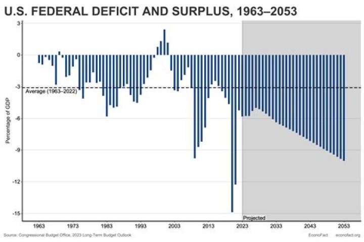 | Deficit | $901 billion (requested) 5.5% of GDP $680 billion (actual) 4.1% of GDP (actual) |