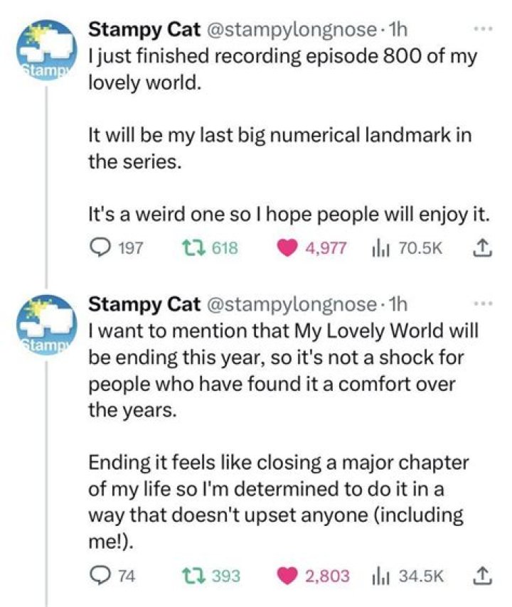 Although Stampy has no plans for any new series with Squid considering his track is going on a different direction now, they will still remain friends. They still collaborate occasionally through some live-streams.