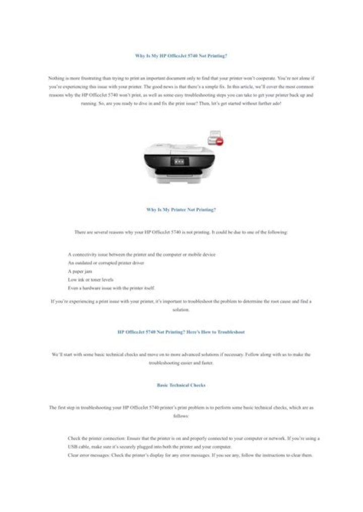HP Officejet 5740 not being able to print could be a result of OS issues. The result of OS updates may make drivers incompatible unless the corresponding drivers have also been updated. OS issues manifest themselves when there is a non-updated software scenario.