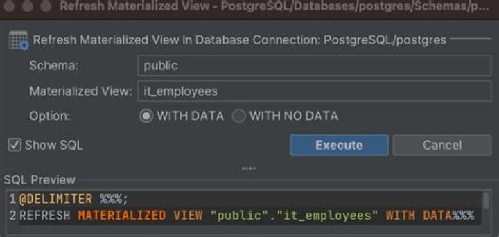 REFRESH MATERIALIZED VIEW completely replaces the contents of a materialized view. To execute this command you must be the owner of the materialized view. The old contents are discarded.